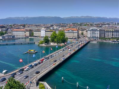 Mont Blanc bridge, Betonnen brug in Genève, Zwitserland