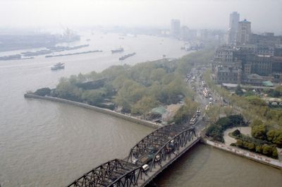 De rivier stroomt door het centrum van Shanghai met 31 bruggen, waaronder de stalen Waibaidu-brug gebouwd in de jaren 1920.