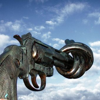 Non-Violence is een bronzen sculptuur uit een reeks kunstwerken die vrede bevorderen bij de ingang van het VN-hoofdkwartier in New York. De vorm toont een revolver met een geknoopte loop en bereikt een hoogte van meer dan 4 meter.