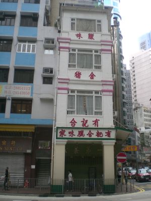 Het gebouw op nummer 1 Queen's Road West toont een tong lau ontwerp, met meerdere verdiepingen die woonruimtes met commerciële ruimtes combineren.
