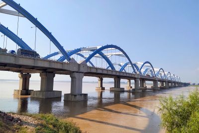 De Liujiang-brug over de Gele Rivier strekt zich uit over 1.255,2 meter en wordt ondersteund door meerdere betonnen en stalen pilaren.