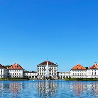 Nymphenburg is een barokpaleis in Neuhausen-Nymphenburg, München, Duitsland, bestaande uit een centraal hoofdgebouw en meerdere zijvleugels. Het complex strekt zich ongeveer 700 meter uit en toont lichte kalksteen als bouwmateriaal in de gehele structuur.