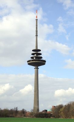 De Fernmeldeturm Münster bereikt een hoogte van 229,5 meter en heeft een mandstructuur met een diameter van 40 meter op 108 meter hoogte.