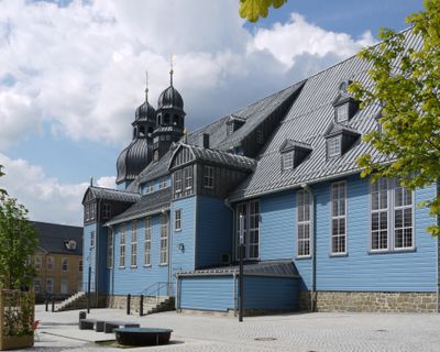 De Marktkerk, gebouwd tussen 1639 en 1642, is de grootste houten kerk van Duitsland met barokke architectonische elementen.