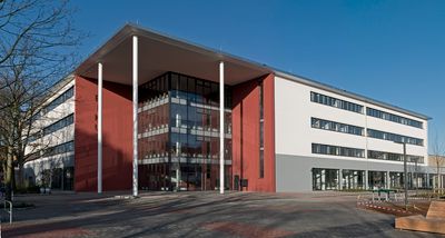 Bildungs- und Kulturzentrum Frankfurt, Onderwijscomplex in Höchst district, Frankfurt, Duitsland.
