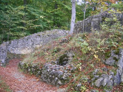 De kasteelruïne staat op een steile klif van de Zwabische Jura op 800 meter hoogte, met overblijfselen van muren en een slotgracht.
