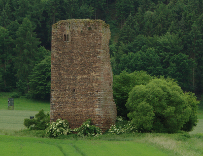 De kasteelruïne behoudt zijn originele zandstenen samenstelling uit de 12e eeuw, wat de bouwmaterialen van middeleeuws Hessen weerspiegelt.