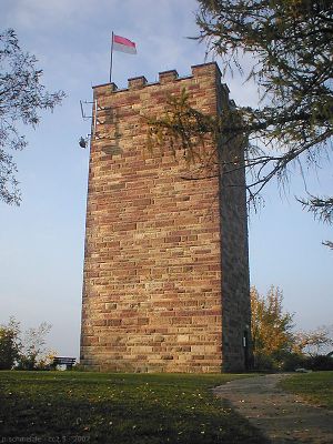 De watertoren werd gebouwd in de jaren 1960 en herbergt een kleine tentoonstelling over de geschiedenis en geologie van de regio. Deze combinatie van middeleeuwse ruines met een 20e-eeuwse structuur creert een onverwacht contrast op de heuvel.