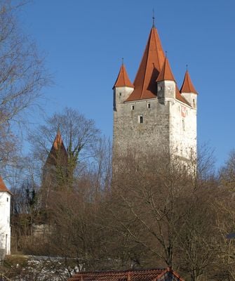 De vesting diende als strategische verdedigingspositie tijdens de middeleeuwen, met architectonische elementen typerend voor Beierse militaire constructies.