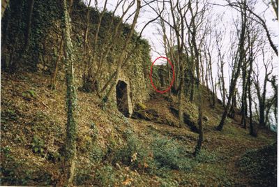 Aan de noordwestzijde blijven sporen van een kunstmatig aangelegde vijver, een zeldzame aanvulling op typische kasteeldefensies. Deze waterkenmerk was waarschijnlijk onderdeel van de verdedigingsstrategie en sloe resources op voor langdurige belegeringen.