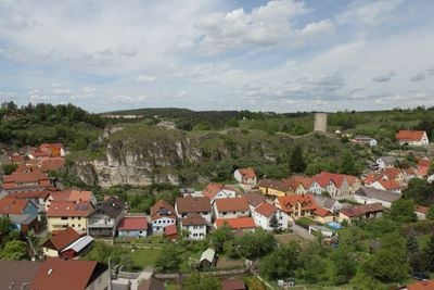Burg Hohenfels is een middeleeuwse kasteeluine gelegen op een heuvel boven het dorp Hohenfels in de Opper-Palts. De overblijfselen vertonen metselwerk uit verschillende bouwfasen, met structuren die een oudere kern en latere verdedigingstoevoegingen tonen.