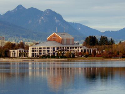 Het Festspielhaus Neuschwanstein beschikt over 1.355 zitplaatsen en combineert moderne architectuur met panoramisch uitzicht op het Forggensee en kasteel Neuschwanstein.