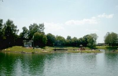 Het meer van 10.500 vierkante meter heeft een zwemeiland, zandstrandgebieden, aangewezen zwemzones en uitgestrekte grasvelden onder volwassen bomen.