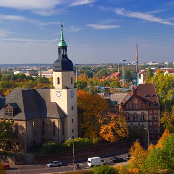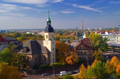 Gelegen aan de Glaucher Strasse 9, de kerk is bereikbaar met openbaar vervoer vanaf tramhalte Glauchaer Platz met parkeergelegenheid bij Steg of Moritzzwinger.