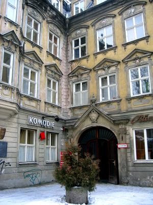 Het gebouw fungeerde als theater genaamd Komödie van 1956 tot 2010, met regelmatige voorstellingen van de Augsburgse Stadspodia.