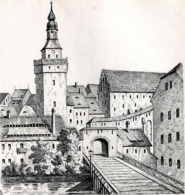 Speichergebäude, zunächst Bestandteil des Vogtshofs, Schule, nach 1529 Stapelhaus für Waid (Waidhaus (Görlitz)) Bei der Peterskirche 8