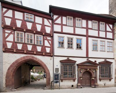 Haus zum Güldenen Krönbacken, Middeleeuws architecturaal ensemble in Erfurt, Duitsland.