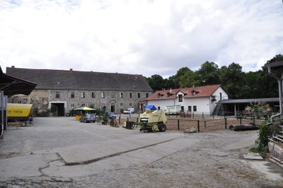 Het landbouwbedrijf omvat meerdere gebouwen, 136 hectare landbouwgrond en faciliteiten voor biologische vleesverwerking in Saksen-Anhalt.