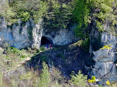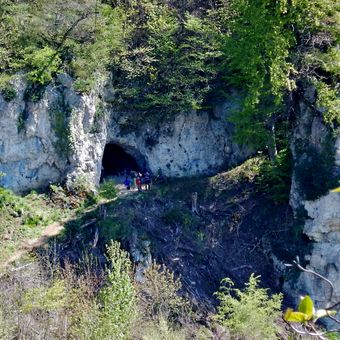 De grotingang, bekend als Heppenloch, leidde in 1889 tot de ontdekking van het hoofdgrottensysteem door de Zwabische Grottenvereniging tijdens hun eerste opgravingen.