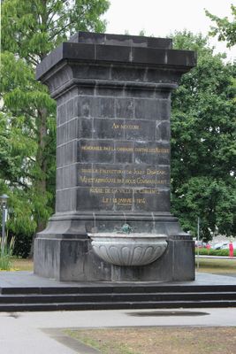 Het werd in 1812 gebouwd door de Franse prefect Jules Doazan om Napoleons Russische campagne te herdenken. Later voegde een Russische commandant een antwoord toe, waardoor twee tegengestelde berichten op het monument graveerden.