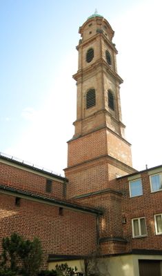 De kerk werd in 1728 gebouwd onder leiding van architect Johann Gunetzrhainer en bepaalde het stadslandschap voor generaties. Na zware bombardementschade in de Tweede Wereldoorlog vond de wederopbouw plaats door Alexander von Branca in het midden van de jaren 1950.