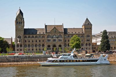 Het gebouw combineert Romanische revivalvormen met Pruisische identiteit en bepaalt het silhouet van Koblenz met zijn dominante aanwezigheid aan de Rijn. De massieve hoektorens en uitgewerkte gevels tonen hoe architectuur staatsmacht uitdrukte.