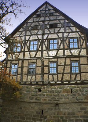 Schloss Ebelsbach is een stenen kasteel dat uittorent boven het landschap en verschillende bouwstijlen uit verschillende perioden vertoont. De structuur combineert muren en formaties die over generaties heen zijn gewijzigd en aangepast.