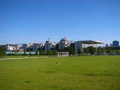 Een centrale heuvel met stalen landschapsincisies biedt uitzichten op de Reichstag, het Federale Kanseliersambt en het Paul-Löbe-Haus. Dit verhoogde punt toont hoe dicht het park tegen Berlijn's belangrijkste regeringsgebouwen ligt.