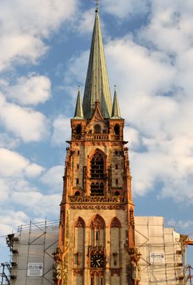 De Sint-Peterskerk verheft zich 80 meter met zijn noordelijke toren en heeft drie beuken verbonden door hoge spitsbogen die 18 meter bereiken in de hoofdbeuk.