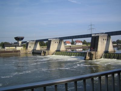 Staustufe Krotzenburg, Waterkrachtcentrale en stuwdam in Großkrotzenburg en Hainburg, Duitsland.