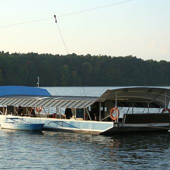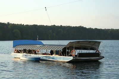 De Straussee-veerboot vervoert passagiers en fietsers over het Strausseemeer met behulp van een kabelsysteem dat wordt gevoed door 230 volt elektriciteit.