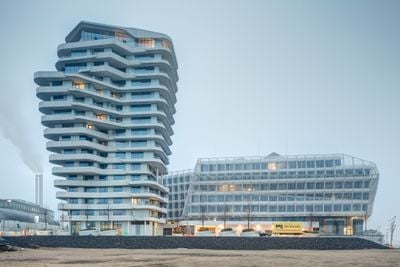 Het gebouw gebruikt thermisch geactiveerde betonplafonds voor natuurlijke koeling, wat aanzienlijke energie bespaard in de exploitatie. Dit systeem laat zien hoe duurzame technologie is geintegreerd in moderne havenarchitectuur.