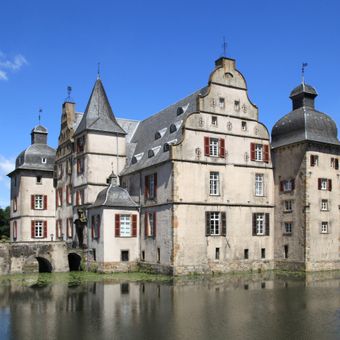 Het kasteel ligt in Mengede, een wijk van Dortmund, en is het hele jaar door toegankelijk voor het bekijken van de buitenkant en het terrein. Wandelen rond het omtrek geeft je het beste beeld van hoe het water het gebouw beschermt en hoe het omliggende landschap is ingericht.