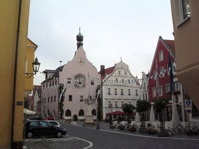 Het Rathaus is een gemeentelijk gebouw in Abensberg met traditionele Beierse architectuurkenmerken zoals een lessenaarsdak en versierde gevels. Het staat centraal op het Stadtplatz en vormt een belangrijk orientatiepunt in het stadscentrum.
