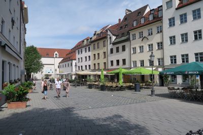 Sebastiansplatz toont traditionele Beierse architectuur met kasseien bestrating en verbindt St. Jakobsplatz met Blumenstraße in het noordoostelijke deel van de oude stad.