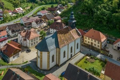 St. Burkard, Kerkgebouw in Ahorntal, Duitsland.