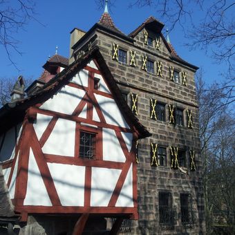 Het gebouw vertegenwoordigt de traditionele Neurenbergse Weiherhaus-architectuur, met vakwerk bijgebouwen rondom de stenen hoofdstructuur.