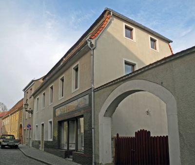 Wohnhaus in halboffener Bebauung, seitlicher Torbogen als Hofzufahrt und zwei Hinterhäuser Antonstraße 3, woonhuis in Dohna, Duitsland