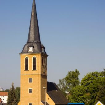 Kirche , Kirchhof, Einfriedung des Kirchhofs, Denkmal für die Gefallenen des 1. Weltkrieges, Gedenkstein »Ehre den Opfern Mai 1945« sowie Grabmal oder Denkmal Alte Hauptstraße 13, kerkgebouw in Duitsland