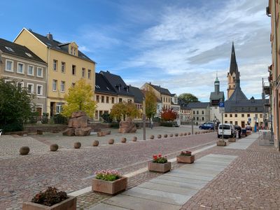 Sachgesamtheit Marktplatz mit umgebender Wohn- und Geschäftshausbebauung aus dem 18. und 19. Jh. mit Heisten Markt -, woonhuis in Burgstädt, Duitsland