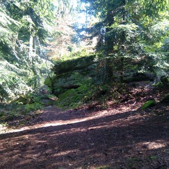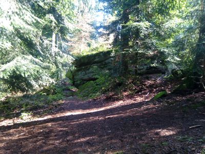 Zu hausartigem Block aufgestapelte Felsblöcke des Buntsandsteins "Felsenhaus"