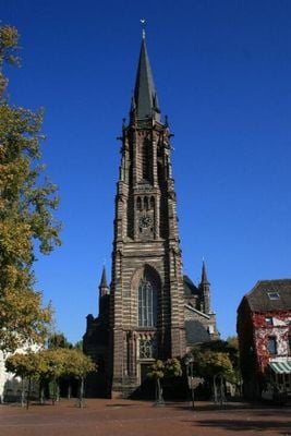 Dit kerkelijk gebouw combineert regionale bouwmethoden met specifieke ontwerpelementen die de architectonische voorkeuren van Noordrijn-Westfalen weerspiegelen.
