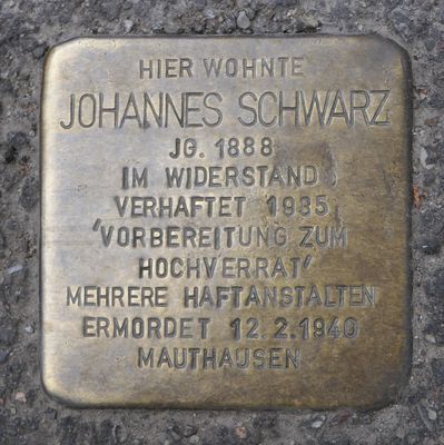Stolperstein dedicated to Johannes Schwarz, stolperstein in Degerloch, Duitsland