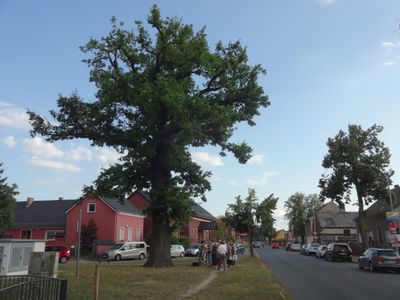 Naturdenkmal Stieleiche (Baum) 0,5 km S Kirche, Ortsausgang nach Jühnsdorf, Trebbiner Damm in Höhe von Haus Nr. 8; Flur 19, Flurstück 43/3 in Blankenfelde