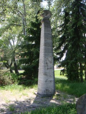 Een inscriptie op een rotsblok naast de obelisk toont Rosa Luxemburgs woorden: 'Ik droom ervan om in vrije momenten kunst te studeren'.