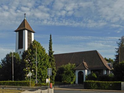 De kerk werd gebouwd in 1950 na de oprichting van een katholieke gemeenschap in 1944 onder ontheemde personen tijdens de Tweede Wereldoorlog. Deze bouw weerspiegelde bredere demografische veranderingen in de regio door oorlogsvertrek.