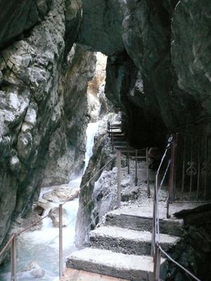 De Höllentalklamm kloof strekt zich twee kilometer uit door kalkstenen wanden, bereikt dieptes van 150 meter met talrijke watervallen over rotsformaties.