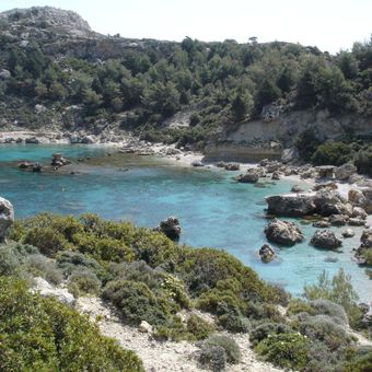 Anthony Quinn Bay is een kleine baai aan de oostkust van Rhodos met smaragdgroen water omgeven door pijnbomen en rotsen. De natuurlijke inham vormt een beschut strand met beperkte capaciteit, omsloten door steile hellingen.