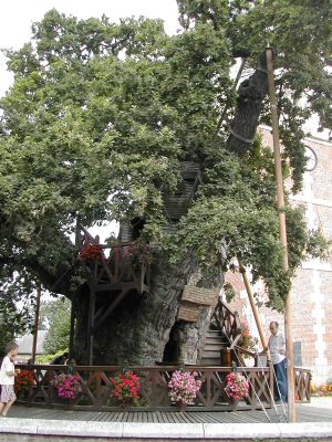De eik herbergt twee miniatuurkapellen in zijn stam, bereikt een hoogte van 11 meter met een omtrek van 10 meter.