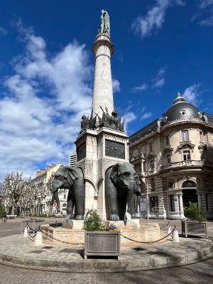 De Olifantenfontein is een watermonument in centraal Chambéry met vier gietijzeren olifanten boven een achthoekig bekken. Water stroomt uit hun slurf om een dynamisch waterspel in het hart van het plein te creëren.